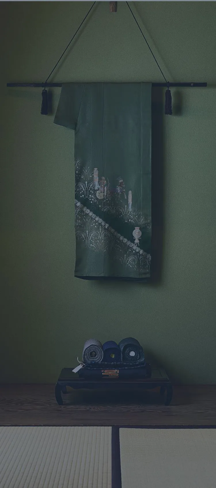 人生の節目や、特別な時間に纏う一着。 仮縫いを含む丁寧な制作工程を経て、想いや背景を深く汲み取りながら設計します。節目の装い、大切な着物の仕立て直し、舞台衣装など、時間をかけて形にするラインです。